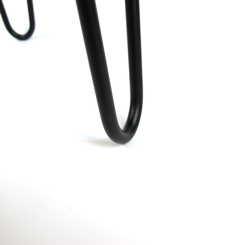 Die schwarz seidenmatt pulverbeschichteten Stahlbeine geben ihm Stabilität und verleihen ihm einen modernen Look. Die Tischplatte wurde speziell geölt, um eine wasserabweisende Oberfläche zu erzielen und sie somit vor Flecken zu schützen. Um je nach Untergrund einen stabilen und schonenden Stand zu gewährleisten, werden 3 Füße für die Tischbeine mitgeliefert, die Sie ganz nach Bedürfnis benutzen können, aber nicht müssen.