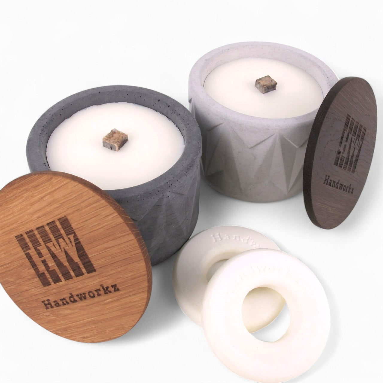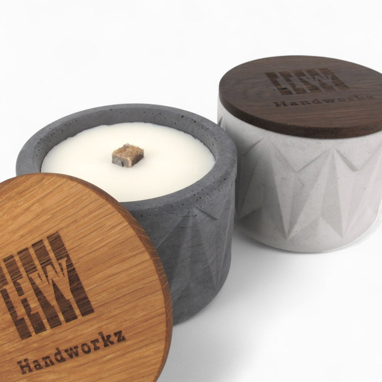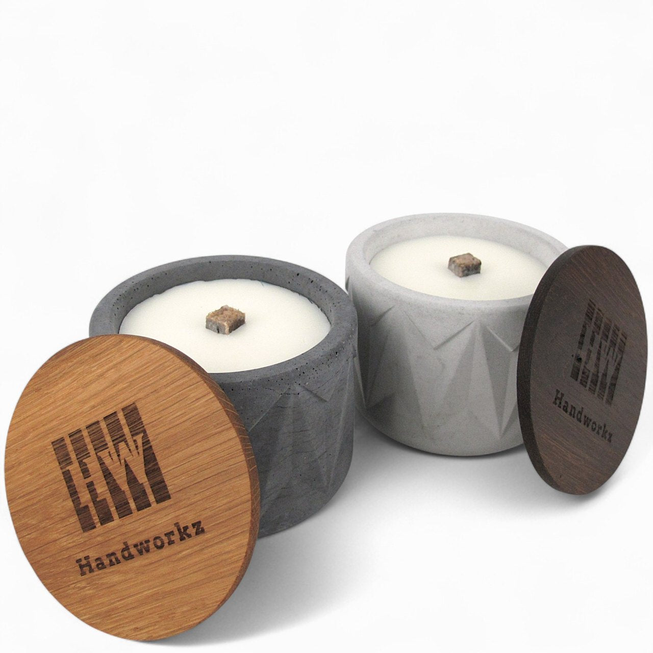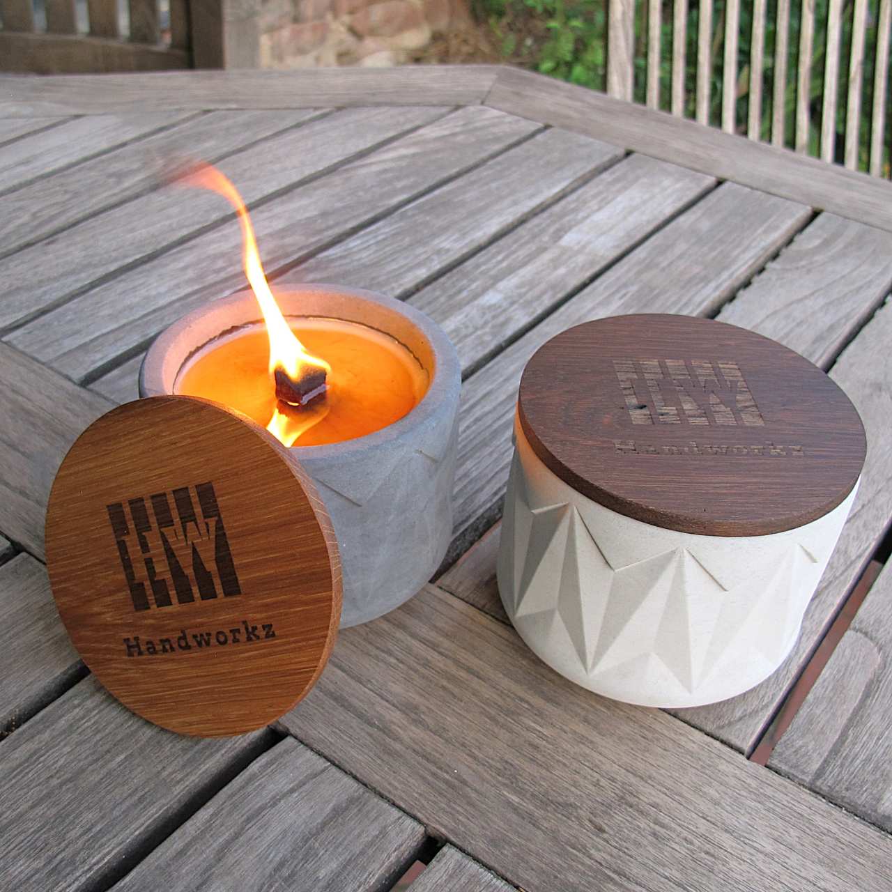 Eingefasst in hochwertigem Beton und in den Farben grau und anthrazit erhältlich. Gefüllt mit 180g Bio-Sojawachs und einem Dauerdocht aus Echtholz, der Boden ist mit Filzfüßen versehen, um einen schonenden Stand zu gewährleisten. Das brodelnde Feuer, welches in ihm schlummert, wird mit edlem Löschdeckel aus altem Eichenholz und geschliffener Edelstahlplatte in Schach gehalten!