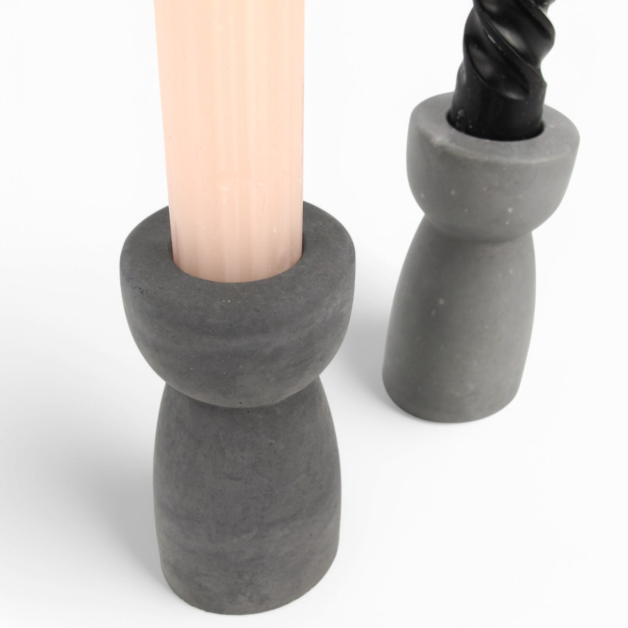 Durch seine schlanke Form ist dieser Kerzenständer ein schönes Accessoire in Ihrem Zuhause. Grade in Kombination mit einem unserer anderen Kerzenständer kann man schöne Akzente setzen. Da unsere Betonmischung sehr dicht ist, haben unsere Produkte im vergleich zu anderen Anbietern ein deutlich höheres Gewicht, was grade bei einem solchen Kerzenständer sinnvoll ist, da es zu einem stabilen und sicheren Stand beiträgt.
