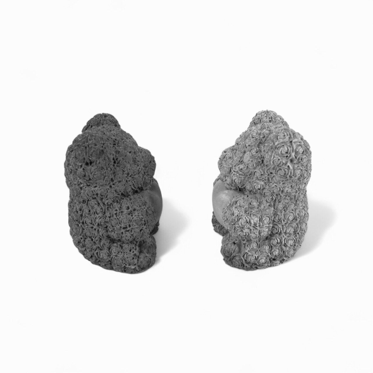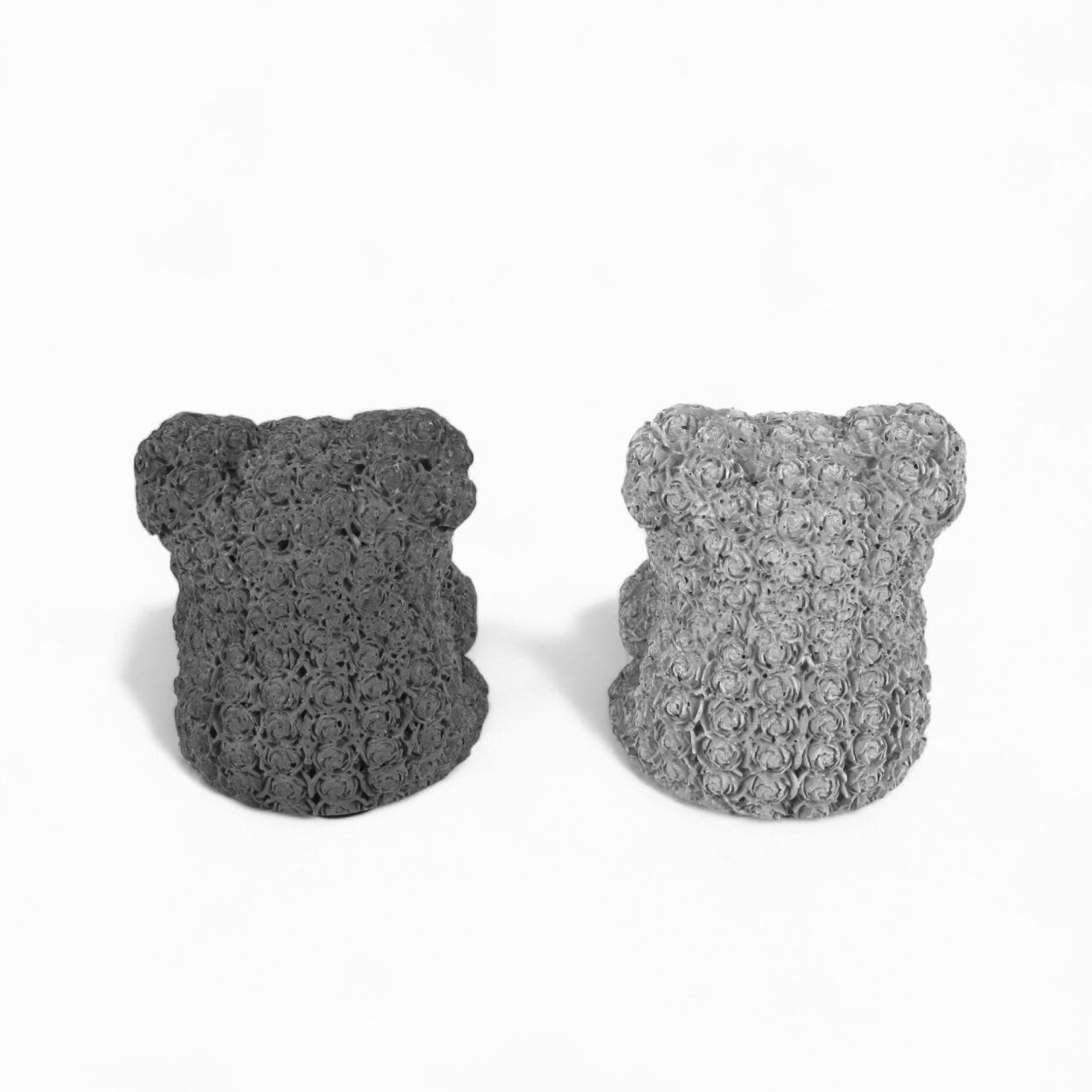Rosi ein Bärchen im Rosenkleid, welcher aus hochfestem Beton gegossen wurde.