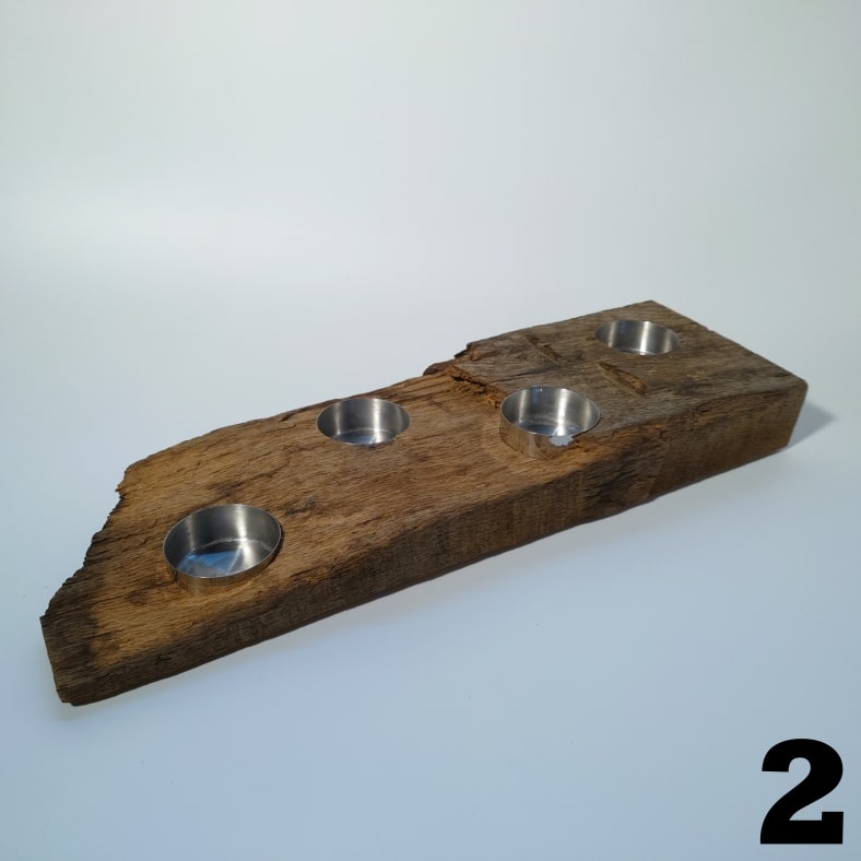 Die Kerzenständer werden aus alten Fachwerkbalken hergestellt, somit besticht jeder einzelne Kerzenständer durch eine individuelle Optik und erzählt seine eigene Geschichte. Manche sind relativ schlicht, andere dafür umso rustikaler.